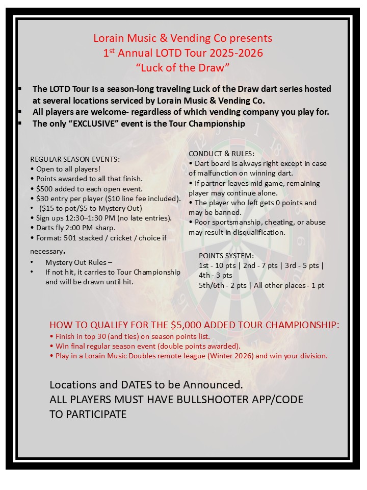 Whether you're throwing darts at a professional level or you're shooting pool for the first time, a great way to build camaraderie and build your confidence is to join a league! Leagues are a great way to meet people with your interests, enjoy tourneys for friendly and fierce competition, and keep sharpening your skills as a player. There are a wide variety of leagues in and around the Amherst area, like, Galion, Port Clinton, and Mansfield, so you’re bound to find one that’s perfect for you. There are even remote leagues as well if you find that our leagues aren’t in your proximity. Joining a league is as easy as registering via our website and perusing all your options to find your right fit. There are also traveling leagues and in-house leagues!